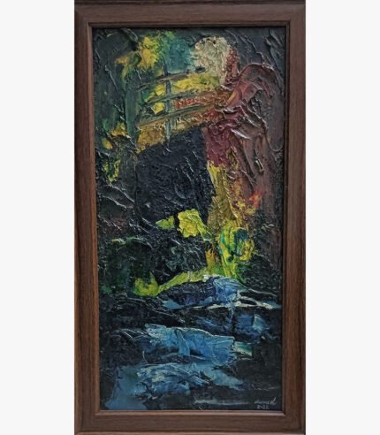 • A vibrant 16" × 24" original acrylic on canvas by Falguni Dhapa. "A Beautiful Homestead in Nature’s Lap" captures a peaceful rural cottage under a brilliant sky, offering a timeless escape into nature for your home or office.